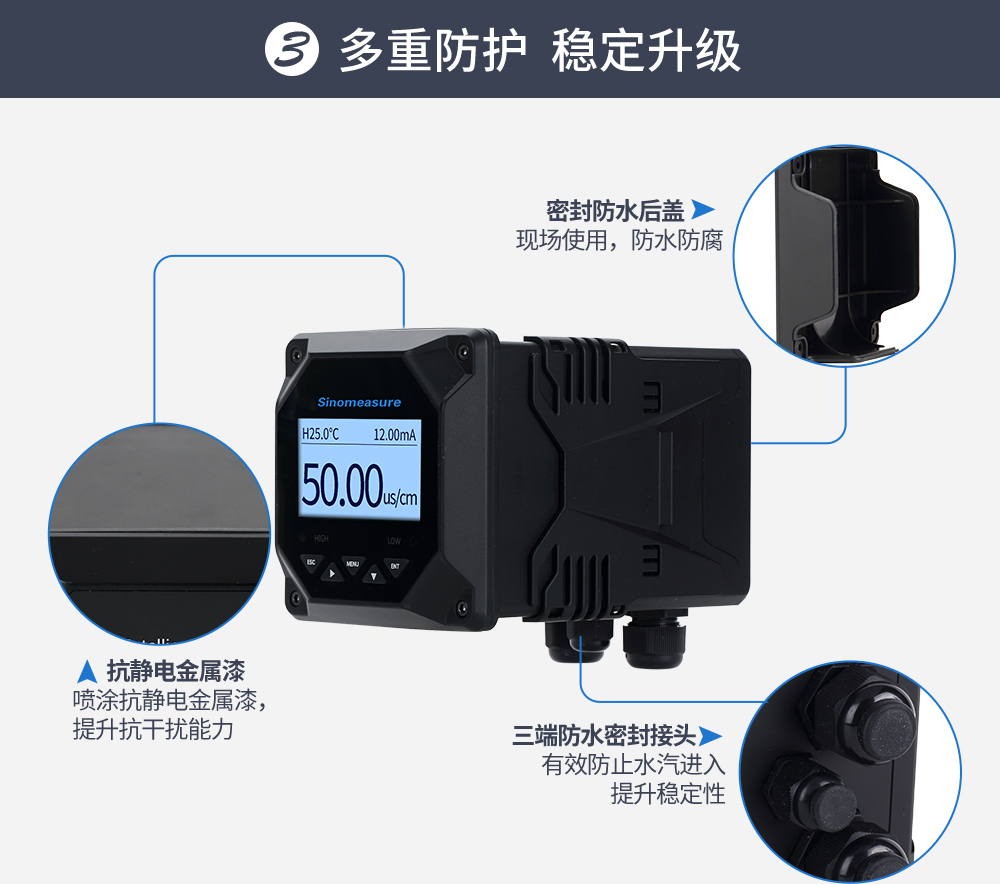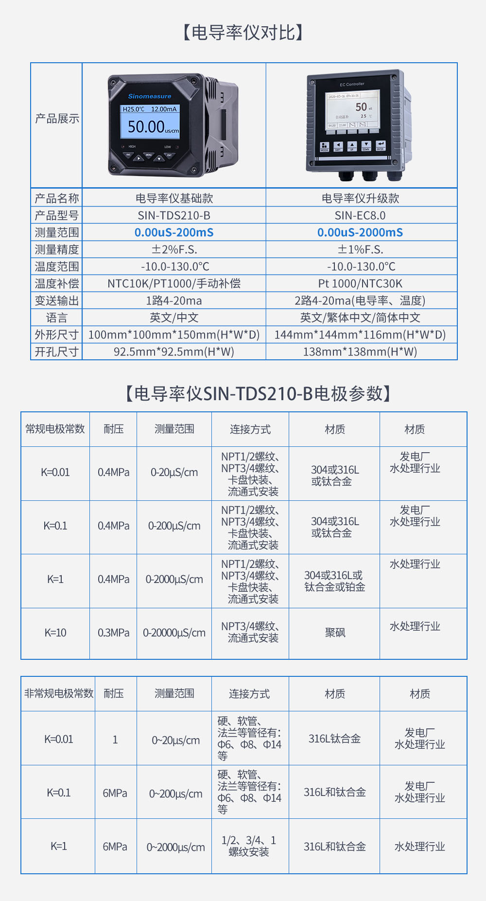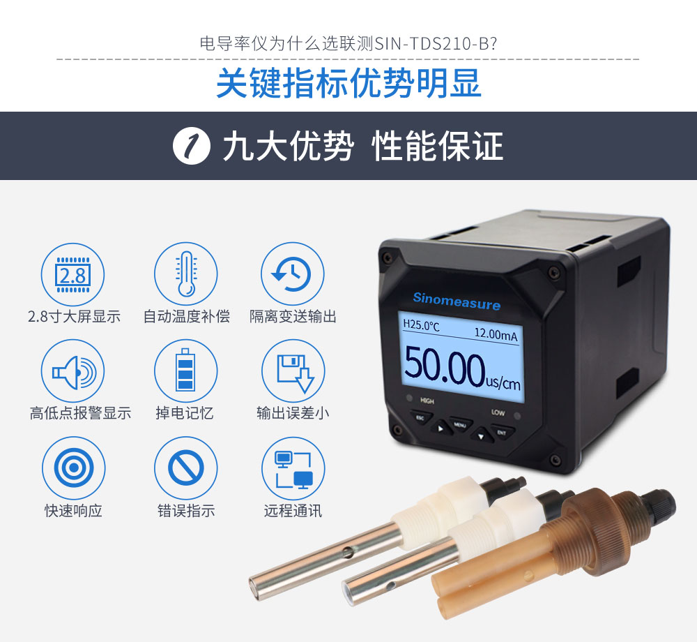 SIN-TDS210-B工業電導率儀表,廣泛應用于火電、化工化肥、冶金、環保、制藥、生 化、食品和自來水等行業??刂破髦饕獙θ芤褐械碾妼?總溶解固體/ 電阻率和溫度進行連續監測。