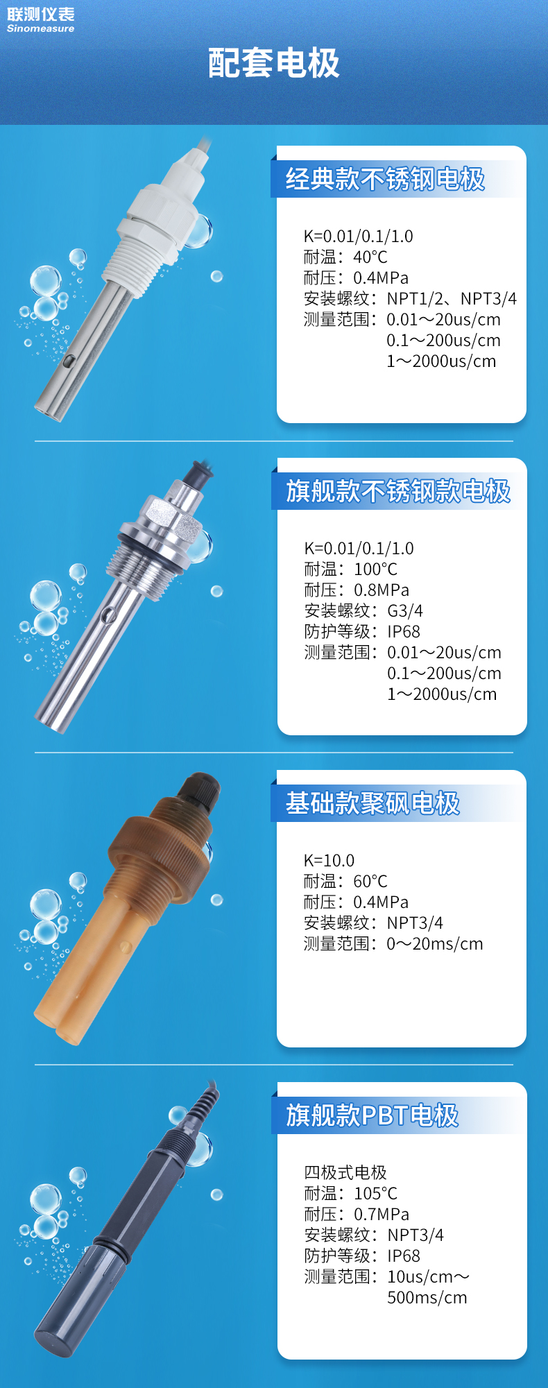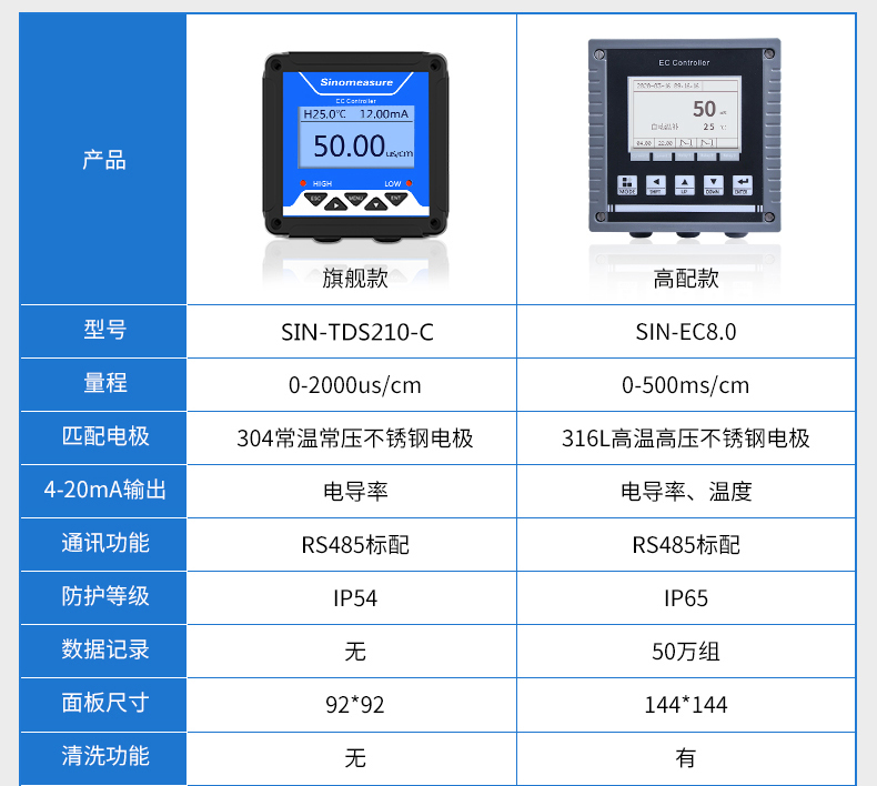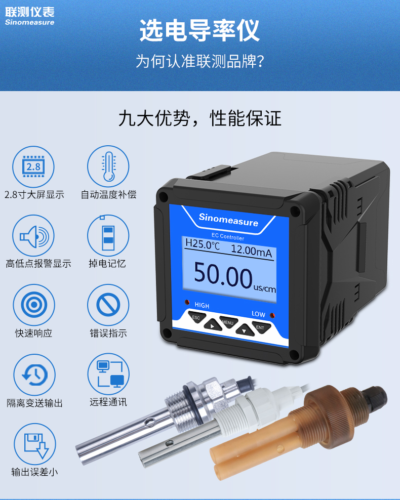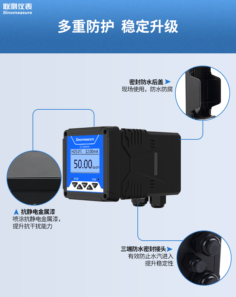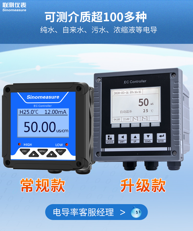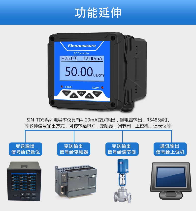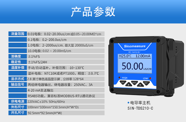SIN-TDS210-C工業(yè)電導率儀表,廣泛應用于火電、化工化肥、冶金、環(huán)保、制藥、生 化、食品和自來水等行業(yè)。控制器主要對溶液中的電導率/總溶解固體/ 電阻率和溫度進行連續(xù)監(jiān)測。