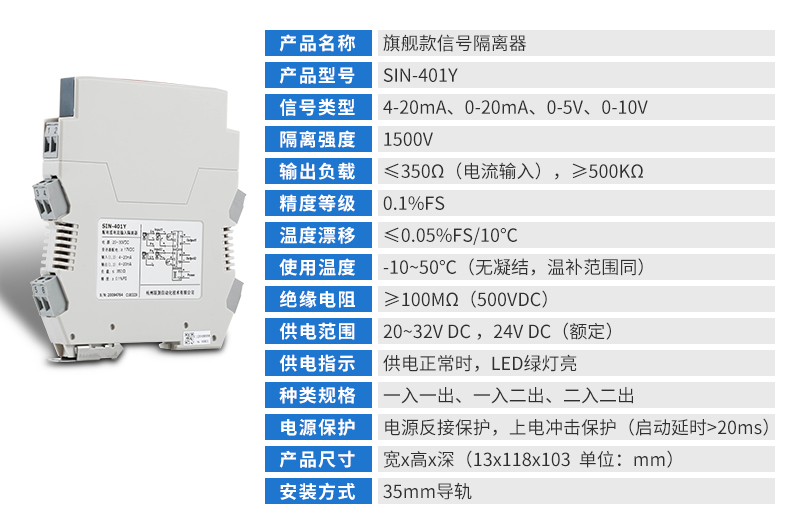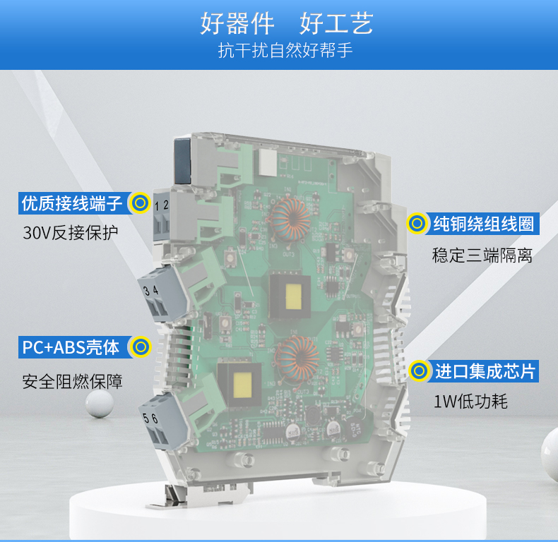 信號(hào)隔離器是一種信號(hào)隔離裝置,將輸入單路或雙路電流或電壓信號(hào),變送輸出隔離的單路或雙路線性的電流或電壓信號(hào),并提高輸入、輸出、電源之間的電氣隔離性能。