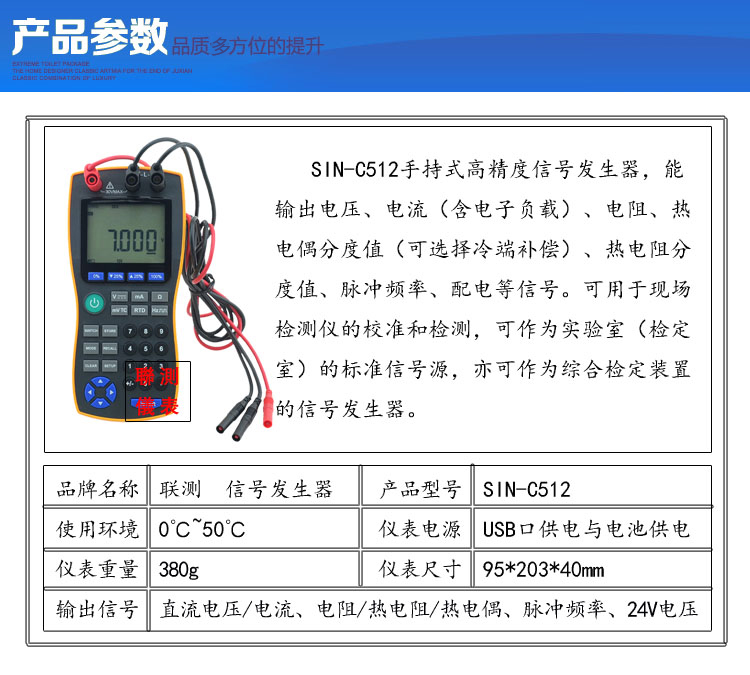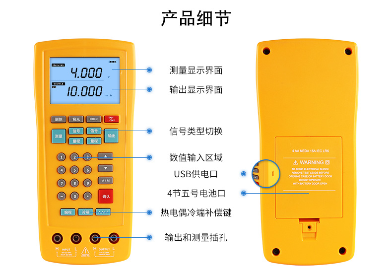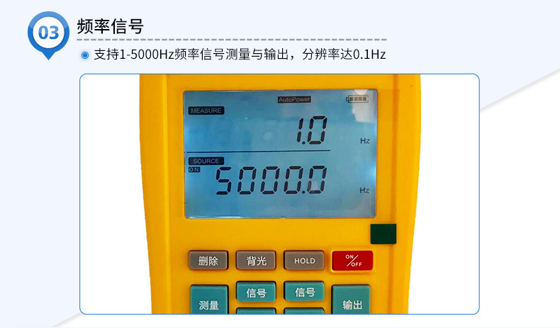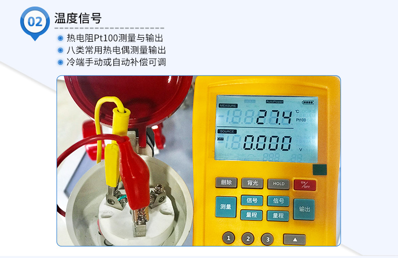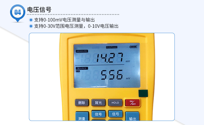 信號發生器具有多種信號的測量和輸出功能,包括電壓、電流、熱電偶,采用高清LCD液晶屏和功能分明的硅膠按鍵,操作簡單,待機時間長,精度高,并且具有可編程輸出的功能。