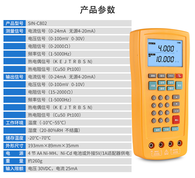 聯測_SIN-C802_模擬信號發生器4-20mA過程校驗儀_
