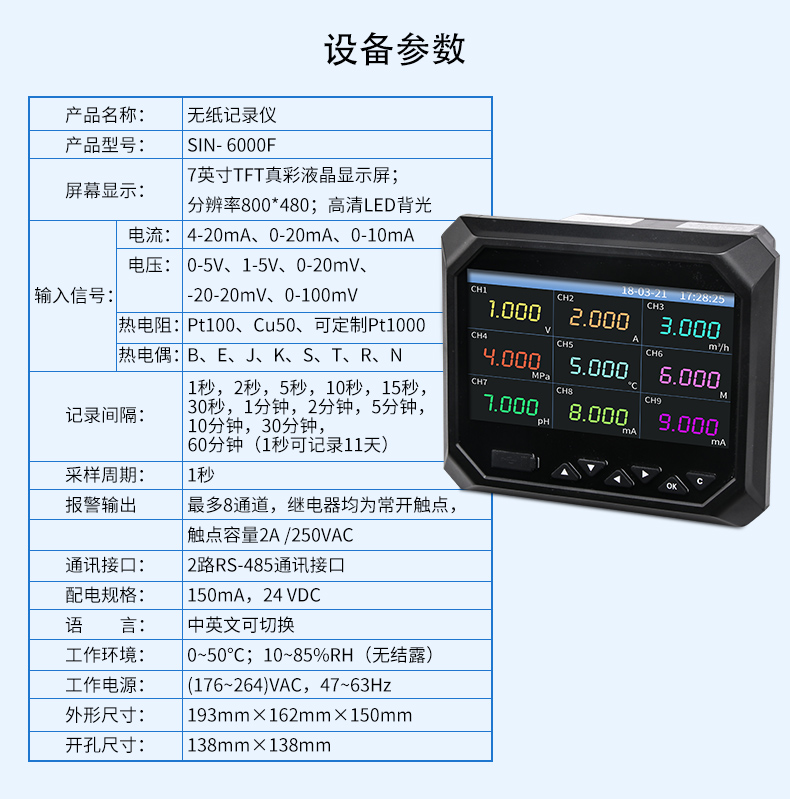 無紙記錄儀是將工業現場的各種需要監視記錄的輸入信號,比如熱電阻和熱電偶的溫度信號、流量計的流量信號、 壓力變送器的壓力信號等。