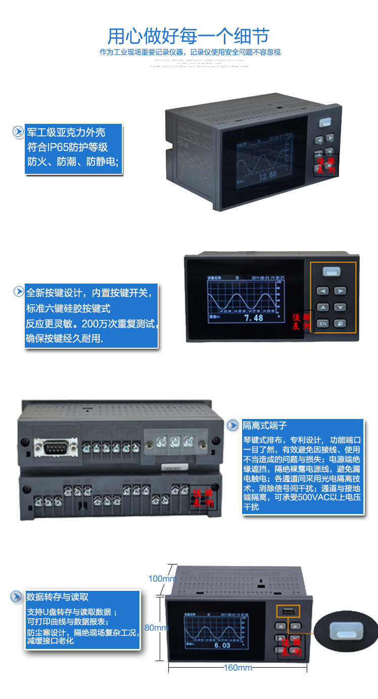 SIN-R200D系列無紙記錄儀可自由組態(tài)輸入標(biāo)準(zhǔn)電流、標(biāo)準(zhǔn)電壓、熱電偶、熱電阻、頻率等信號,可實現(xiàn)為傳感器配電和繼電器報警輸出,并且可通過U盤或通訊方式與上位機進(jìn)行數(shù)據(jù)交換。