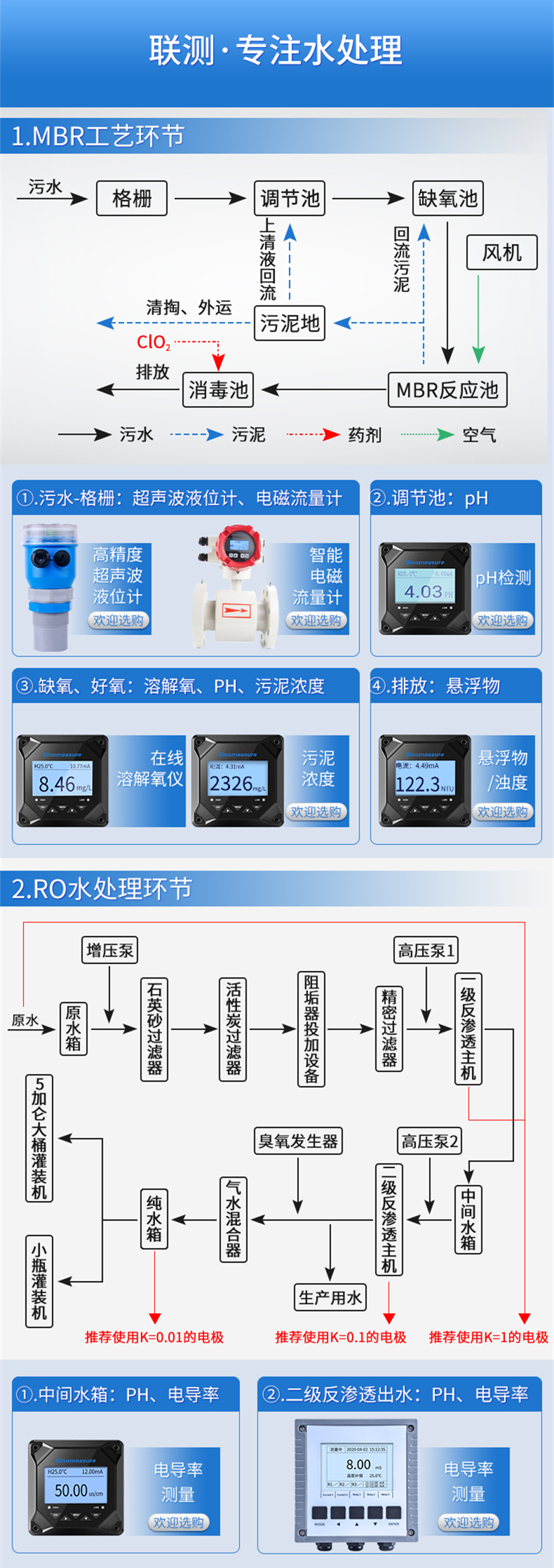 濁度/污泥濃度傳感器的原理基于組合紅外吸收散射光線法,應用 ISO7027 方法可以連續并精確地測定濁度或污泥濃度。